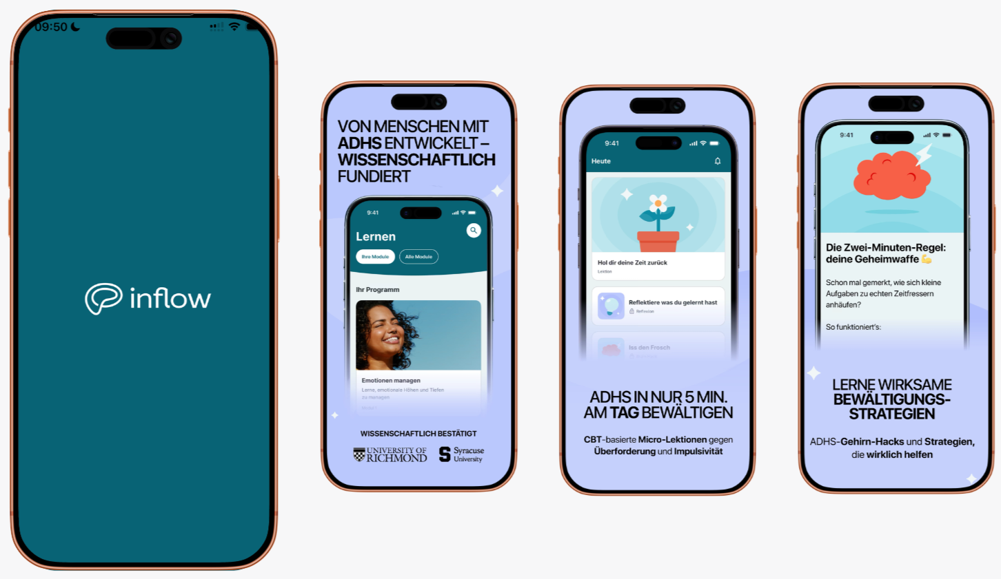 The problem: many don’t even realize they are affected, or they are only diagnosed later in life. The Inflow app helps you create clarity in your mind—and in your home. Whether you’ve already been diagnosed or are still figuring things out, Inflow supports you every step of the way.